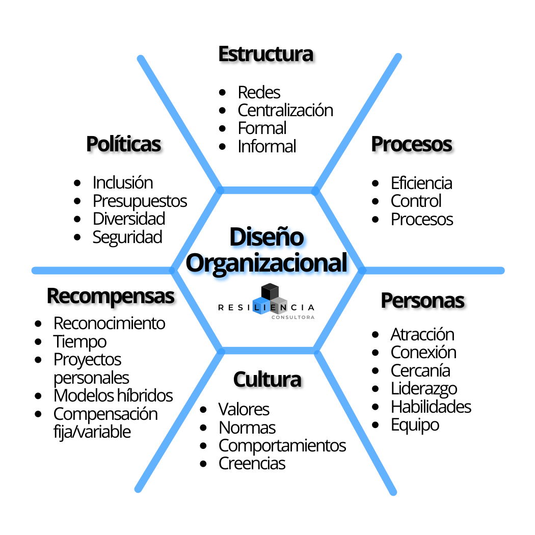 El diseño organizacional tiene como objetivo alinear la estrategia, la cultura, la estructura y los procesos de cambio en una organización. Así, logra organizaciones más eficientes, que generan valor y lo monetizan. Dado que las organizaciones son organismos vivos compuestos por personas, las recompensas, la gestión humana, las políticas y los procesos también son ejes medulares del diseño organizacional.